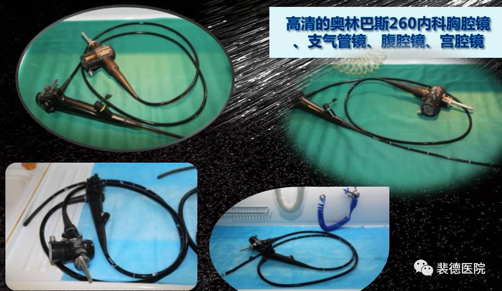 腔镜中心:高清的奥林巴斯GIF-H290型电子胃镜及CF-H290AI结肠镜、胰十二指肠镜(可做逆性胰胆管造影和胆管取石)、奥林巴斯260内科胸腔镜(诊断胸腔积液和胸膜疾病)、奥林巴斯260荧光支气管镜、腹腔镜、宫腔镜,美国史赛克腹腔镜、关节镜狼牌胆道镜、膀胱镜等大批微创器械。