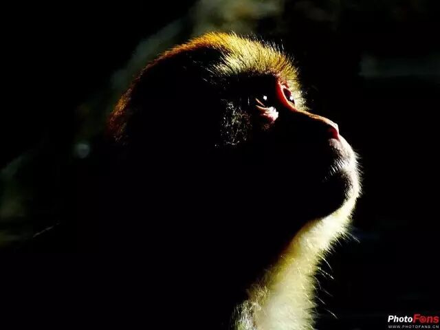 明与暗的强烈反差,使得画面产生完全不同于我们肉眼所看到的艺术效果。这幅作品拍摄时机得当,曝光准确,构图大气,使得画面亮部与暗部的细节都得到了很好的表现。ldy503老师用侧逆光的手法,记录了小猕猴的瞬间,眼神中带着渴望,仿佛在期盼着什么,带给观众无限遐想。