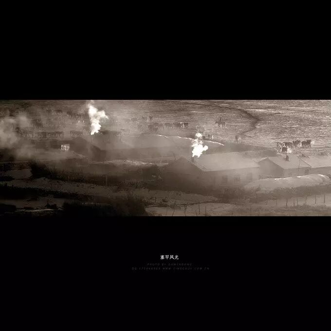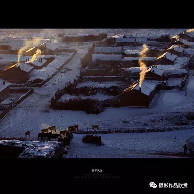 这也是在塞罕坝小红山拍摄的。由于光线被前面的小山丘遮挡,所以只是照到了炊烟上,而未被光线打到的屋顶则泛出蓝色,冷暖搭配,对比强烈,不同的光线下,小红山能表现出不同的韵味。