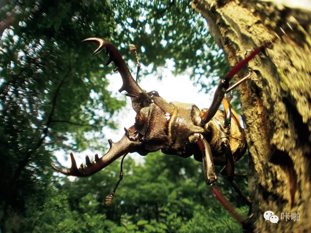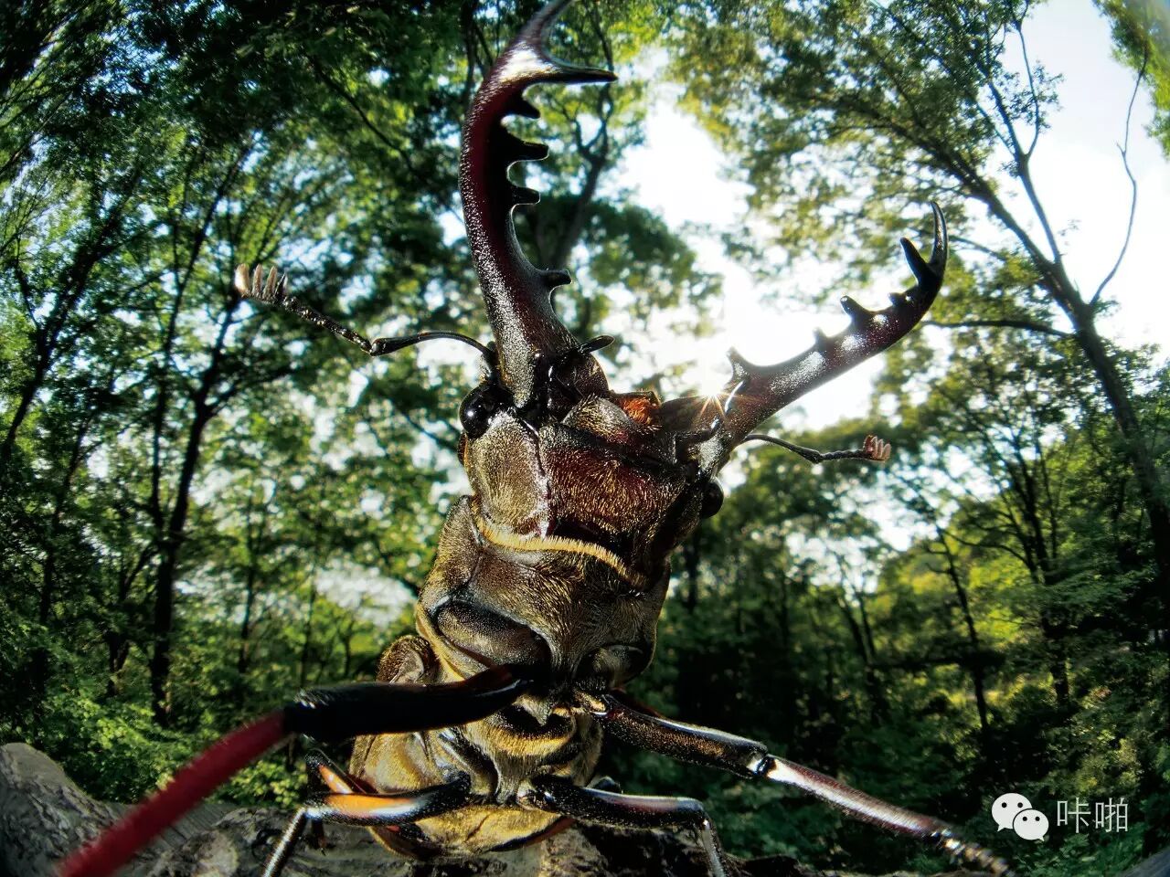 利用虫眼镜头,近距离拍摄锹形虫的夸张大颚