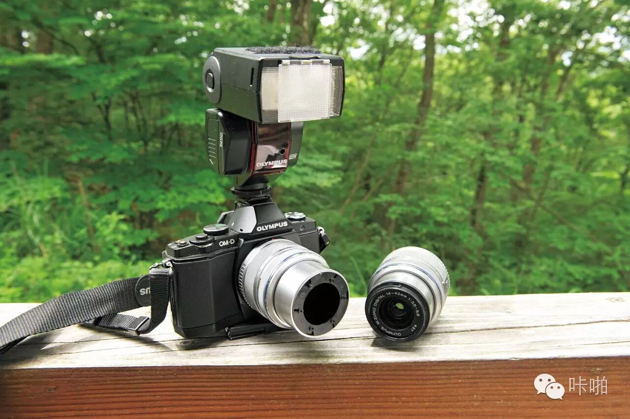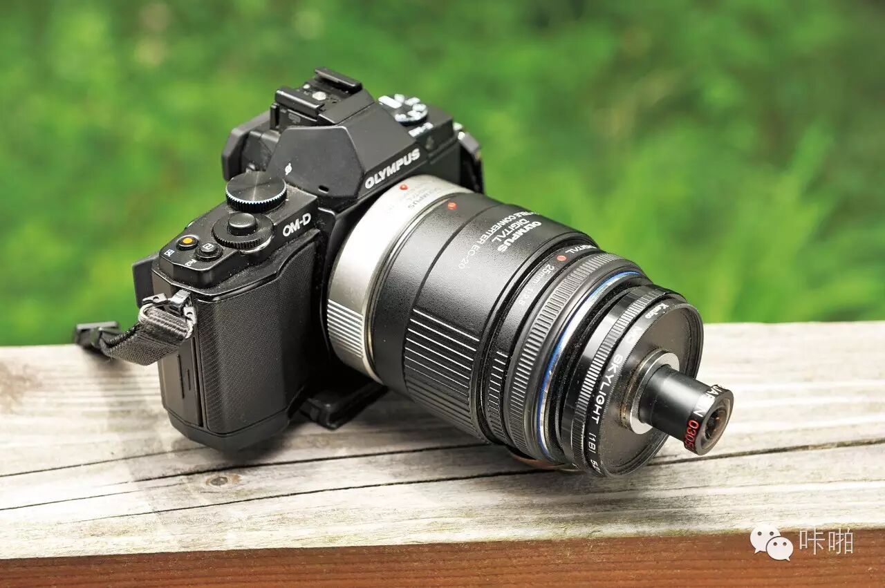 Micro 4/3转接环MMF-1+ZUIKO DIGITAL 2倍增距镜EC-20+ZUIKO DIGITAL 25mm F2.8+FIT鱼露目8号虫眼镜头是FIT公司生产的名为“鱼露目8号”的镜头。通过另购的转接环接好鱼露目8号后,可利用转接方式接装到ZUIKO DIGITAL 25mm F2.8上,然后再将ZUIKODIGITAL 2.0倍增距镜EC-20与Micro 4/3转接环MMF-1接入鱼露目8号与OM-D E-M5之间即可。