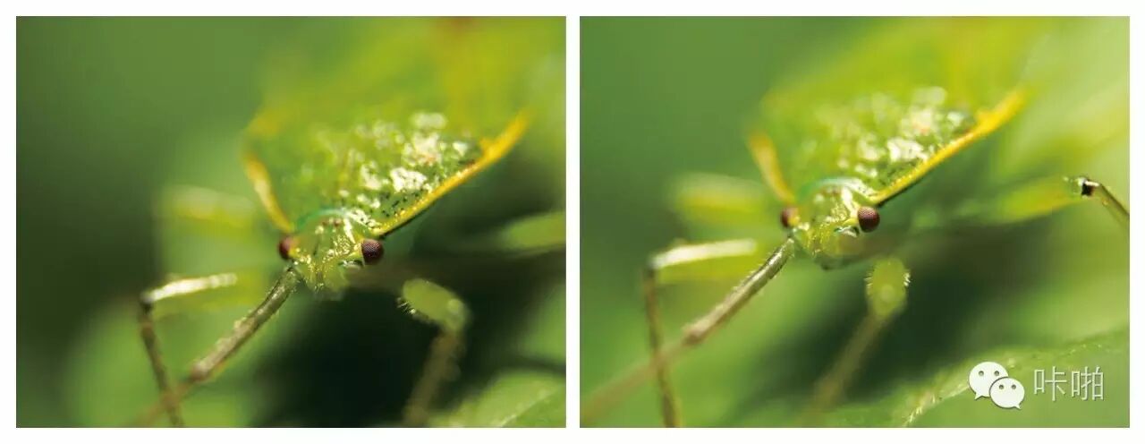 位于机顶的闪光灯受到了前方枝叶的遮挡,导致甲壳虫脚下的区域显得不够鲜亮。调整双闪位置后,整个画面变得更加清晰通透。当然,过于鲜亮有时可能反而带来不自然感,所以还是需要根据场景灵活应对。